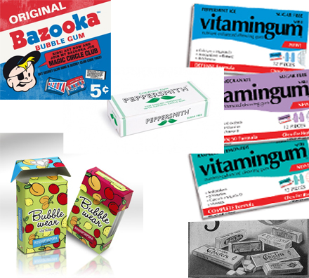 Következzenek a régi és újabb, világ minden tájáról származó rágógumi csomagolások. A legtöbb persze rajzfilmfigurás, képregényes, de már némelyiken megjelennek a manapság is használt motívumok, mint jéghegy, erő és frissesség.