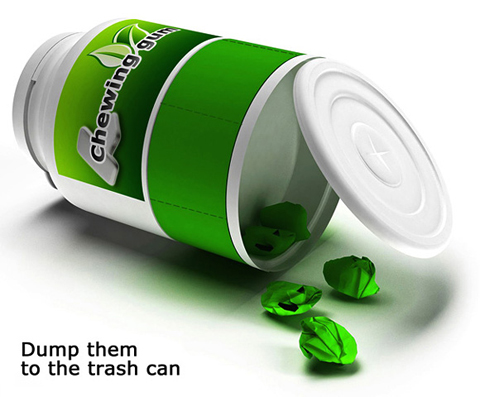 Gonglue Jiang azonban megalkotta a tökéletes rágócsomagolást. A műanyag csavaros tégely oldalán öntapadós csíkok biztosítják, hogy mindig kéznél legyen egy fecni a rágónak. És ami a legjobb, a legalja egy átmeneti tároló amiben a becsomagolt, használt rágók ellehetnek, míg ki nem dobjuk őket.